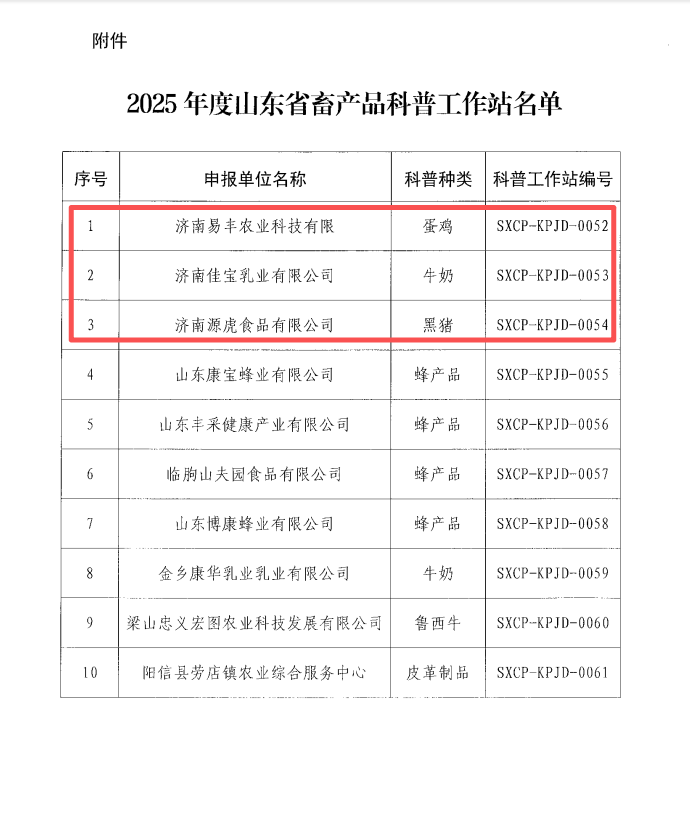 濟南易豐農業(yè)科技有限公司成功獲評“2025年度山東省畜產品科普工作站”,科普種類為蛋雞領域,成為濟南地區(qū)聚焦蛋雞產業(yè)科普、助力畜產品質量安全知識傳播的重要載體;